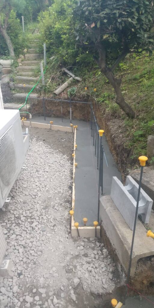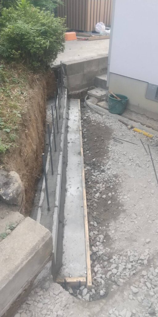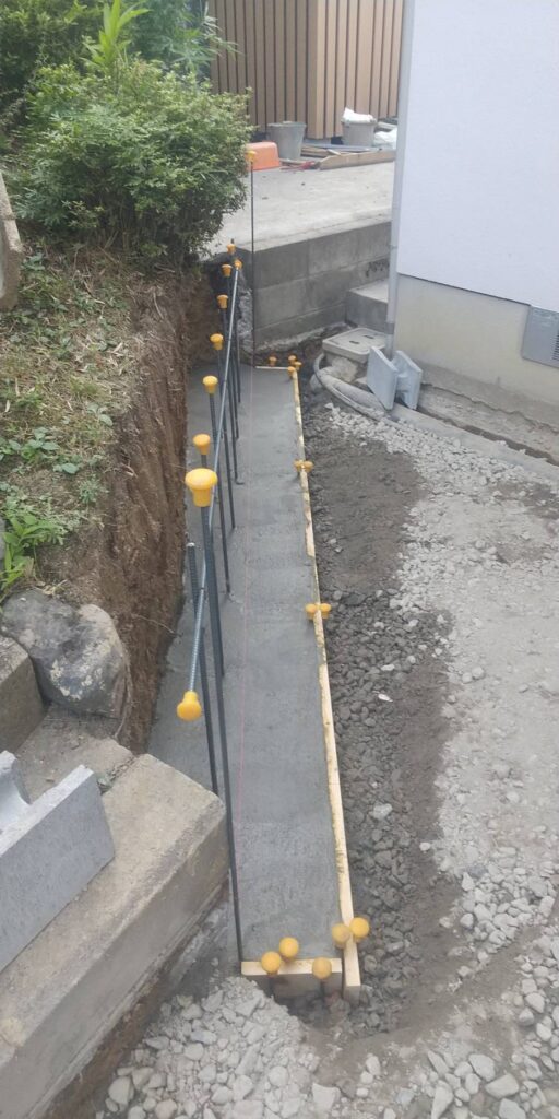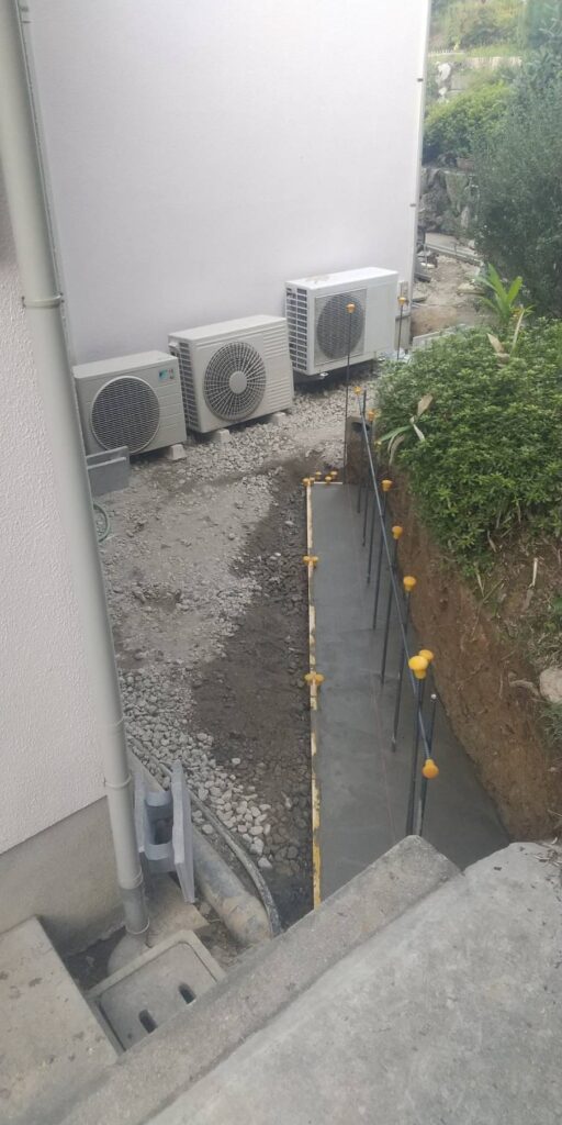 「再生砕石の埋め戻し・転圧」「鉄筋の配筋」からの続きになります。