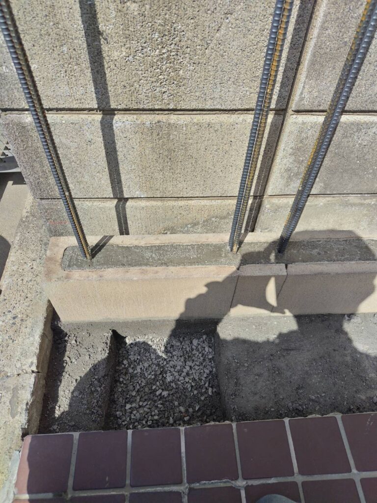 こちらの工事では、既存の塀を一度解体し、基礎から整え直したうえで、新しいブロックを新設しました。