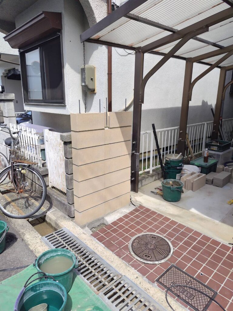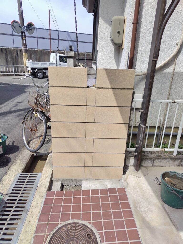 2023年3月、茨木市 O様邸にて、古くなったブロック塀を撤去して新設工事を行いました。