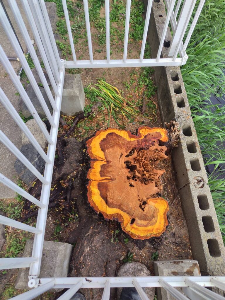N様より「台風などで倒木しそうで不安」とご相談をいただき、安全面を最優先に伐採をご提案いたしました。