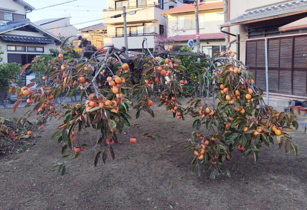 数年前までは樹高が4メートル近くあり、実が高い場所になるため、収穫しづらい状態だった柿の木。